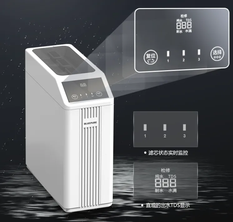 2、水質實時監控:H2能夠實時測量出水的TDS值,并通過顯示屏實時展示,以便用戶隨時了解當前出水的純凈度,如遇濾芯到期導致過濾效果不佳,能夠確保用戶第一時間內進行更換或維護。